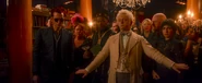 When Crowley tries to approach him again, Azirphale insists he tells him while they dance. He then drags Crowley over to dance with him. Crowley warns him that Shax and a hoard of low-level demons have surrounded the bookshop but Aziraphale remains calm. Since his bookshop still counts as one of Heaven’s Embassies the demons won't be able to get in. He also refuses to hand over “Jim”.