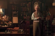 Whilst Crowley escorts the humans away from the bookshop, Nina and Maggie choose to remain behind with Aziraphale. He tries to make Maggie and Nina forget about it but his miracles don't work. He sets about trying to fortify his bookshop from the attack.