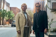Aziraphale arrives back in Soho, parking outside Nina’s coffee shop. The Bentley, which likes Aziraphale, continues to follow him until he ordered her to go back to where he parked her. Crowley exits the bookshop with his houseplants and tells Aziraphale that he’d failed at getting Maggie and Nina together so it is his turn.