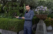 A first look at the new opening title was unveiled, and just like the first season’s opening sequence, season 2’s is a mishmash of illustration, physical props, computer effects, and more — and also chock full of little details and Easter eggs. Peter Anderson, the creative director at Peter Anderson Studio, the team behind the title sequences for both seasons of the show, says that the cinema scene will change from week-to-week to keep up with the new episodes. His favorite little detail, though, involves the scenes in hell because “If you look closely a character from the series one titles is trying to escape hell again!” he tells Polygon over email.[13]